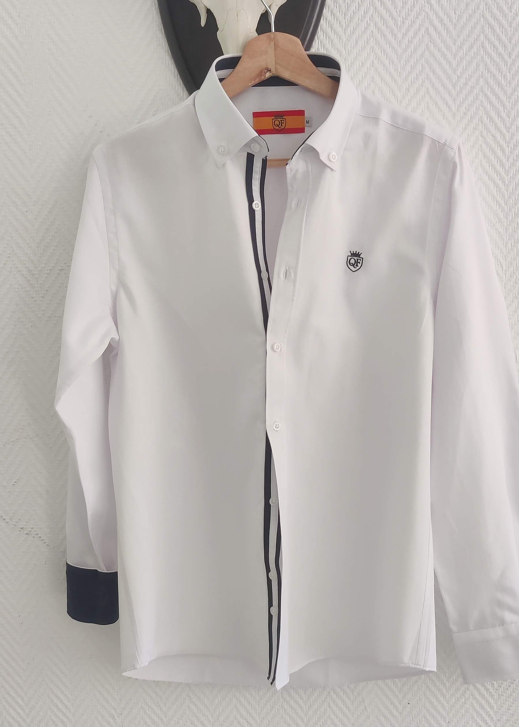 Camisa Clásica Blanca con Contraste Marino | Distinción y Detalle Español